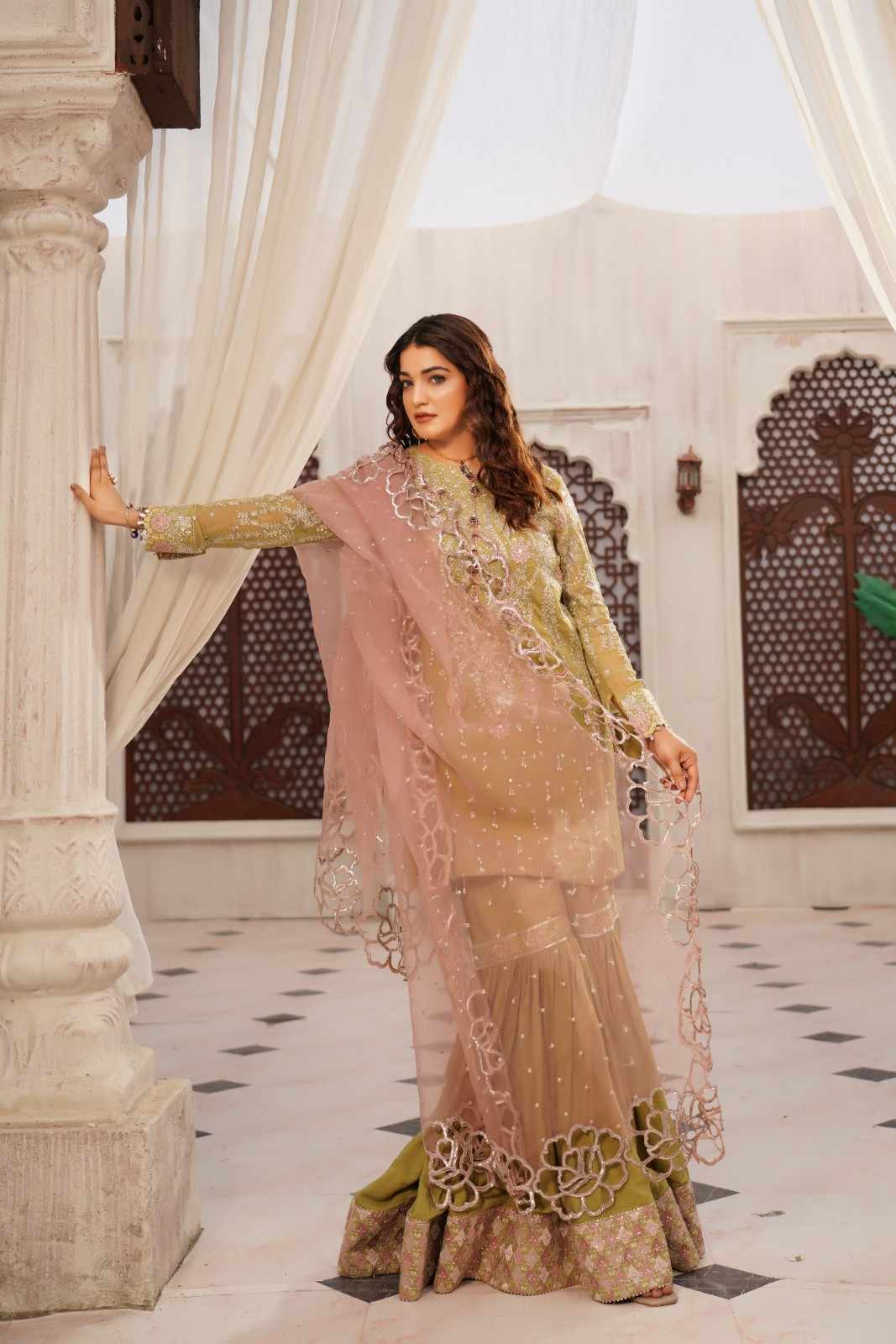 Embroidered Raw Silk Sharara Gota Lace